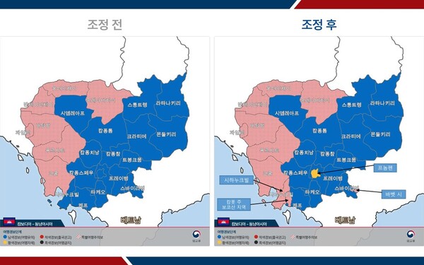 ※ 이번 조정 후 캄보디아 여행경보 현황